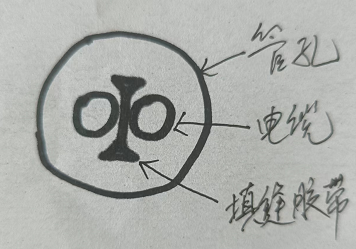 兩根電纜夾縫填膠示意圖