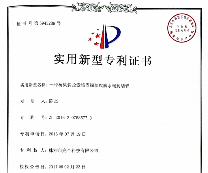 針對此情況,株洲市完全科技有限公司經過多年的現場勘察和技術分析,結合“充氣型管道防水堵漏密封系統”技術,開發出適用橋梁索導管防腐密封的“充氣型斜拉索導管防水密封系統”技術,并先后應用于國內近20座橋梁工程。充氣型斜拉索導管防水密封系統技術的推出,為橋梁拉索錨具防腐提供了一個新的選擇方案。
